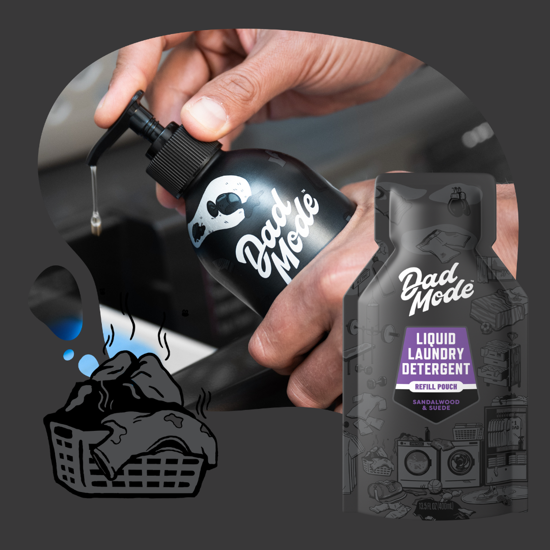 EXTRA FUNKY LOADS: Pretreat with DadMode Deep Stain Remover, 10 pumps, Extra Rinse
